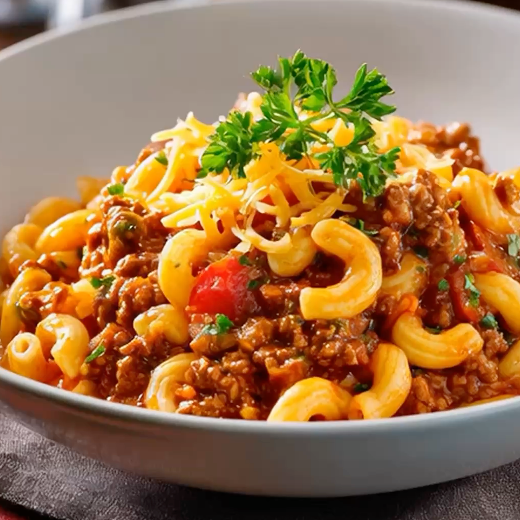 A hearty, one-pot comfort dish made with ground beef, elbow macaroni, and a rich tomato-based sauce. This American-style goulash is perfect for weeknight dinners and feeds a crowd with minimal fuss.