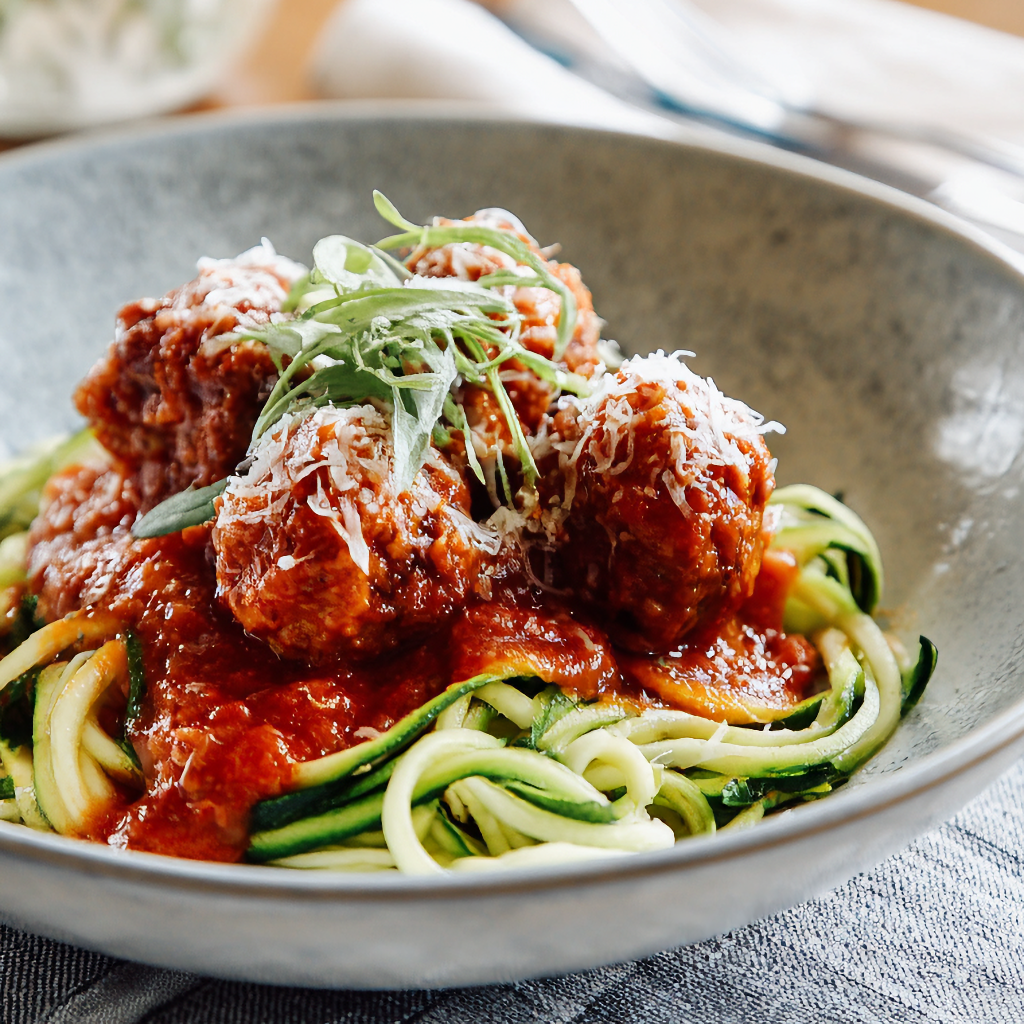 A light yet satisfying dish featuring tender turkey meatballs served over fresh zucchini noodles, topped with marinara sauce and a sprinkle of cheese. A low-carb twist on an Italian classic that’s perfect for a wholesome meal.